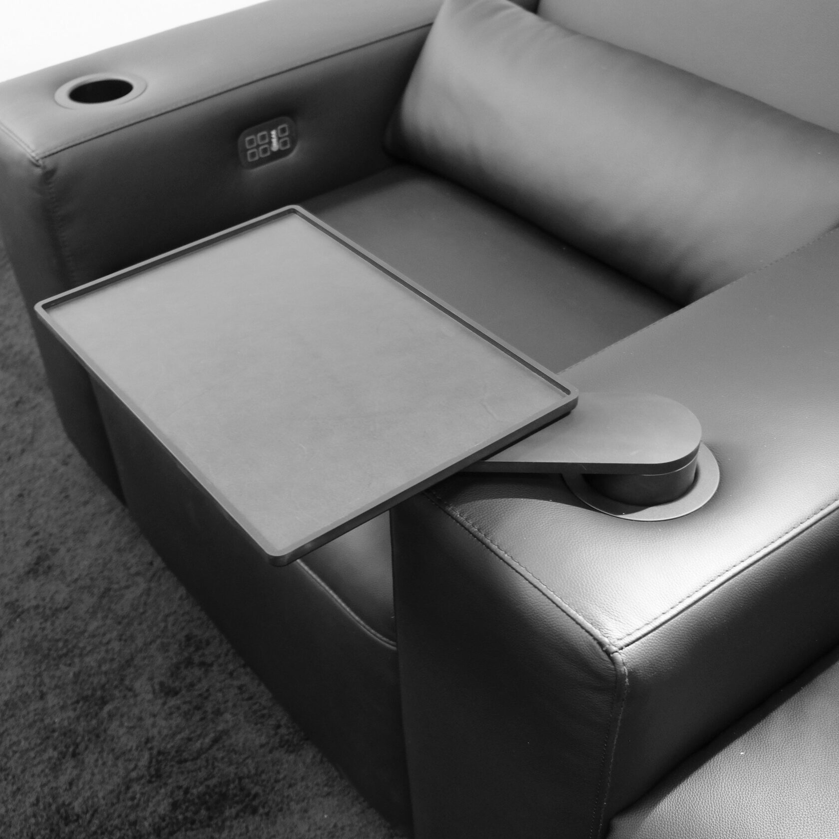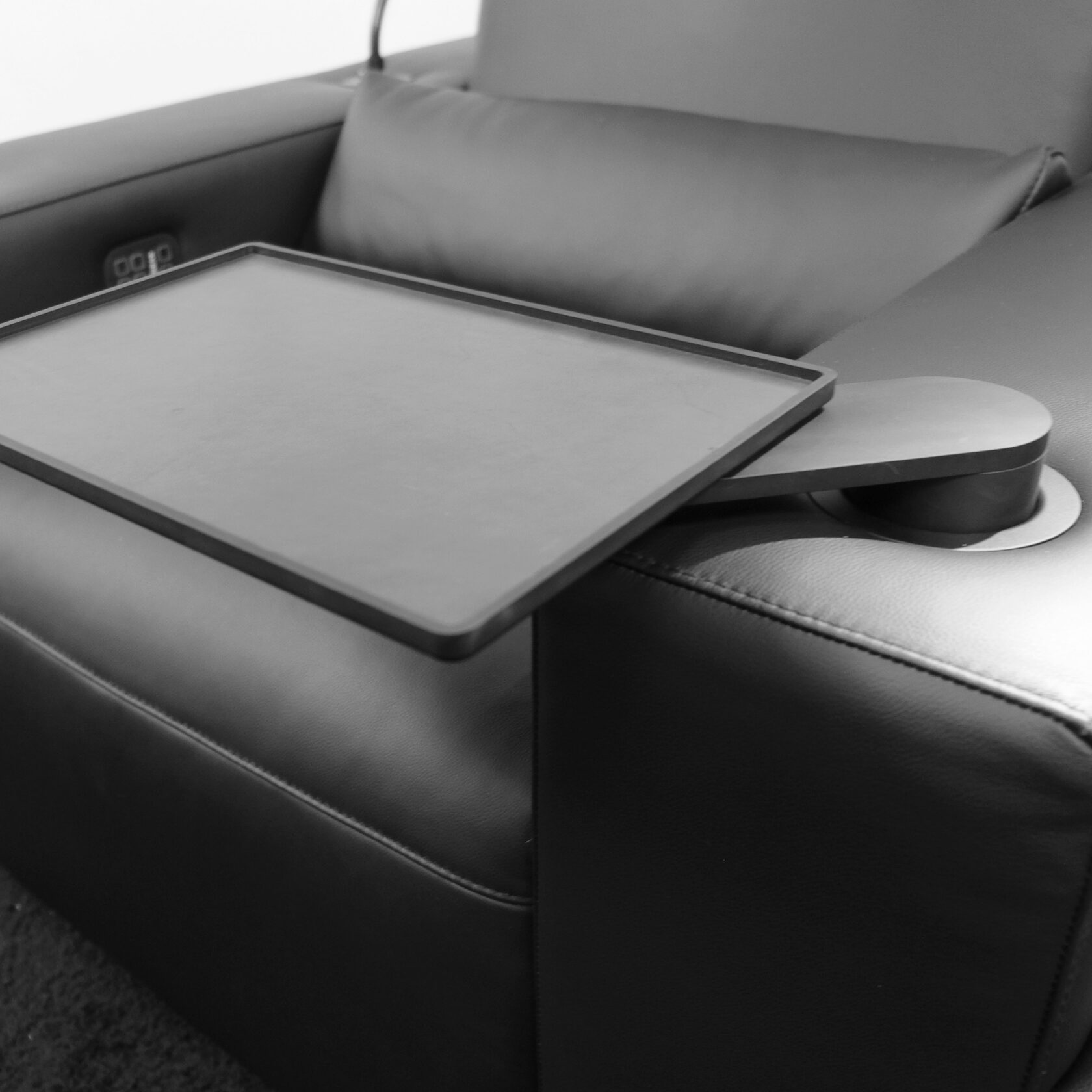 Столик съемный, доступен в черном или темно-сером цвете, а также несколько вариантов дополнительной отделки: